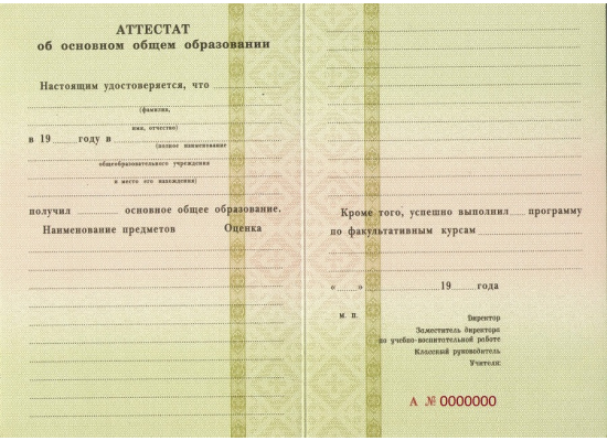 Купить аттестат за 9 класс 1994 - 2006 гг.