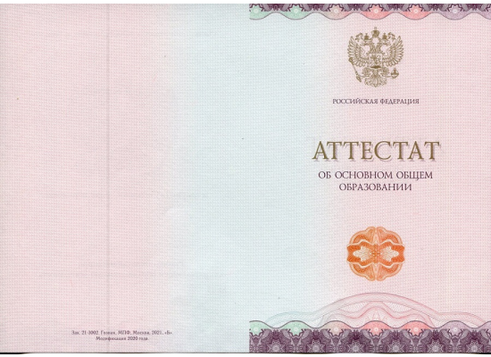 Покупая аттестат за 9 класс 2021 - 2025 гг. Новый Образец в Компании «EXPRESS-Дипломы», вы можете быть уверены в его достоверности и соответствии государственным нормам и требованиям. Мы гарантируем, что наши Аттестат за 9 класс 2021 - 2025 гг. Новый Образец заполняются по учебному плану нужного учебного заведения на нужный год окончания, делается всё по уставу.