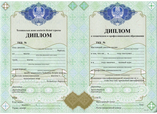 Диплом техникума Казахстана 2000 - 2025 гг.