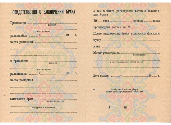 - свидетельство о заключении брака 1993 -1997 гг. любого года выпуска, включая времена СССР – а дополнительно к нему может прилагаться список предметов и оценок, которые можно выбрать по вашему желанию;